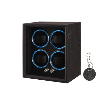Made from real wood, suede interior, 4-slot watch winder with storage for 6 watches.